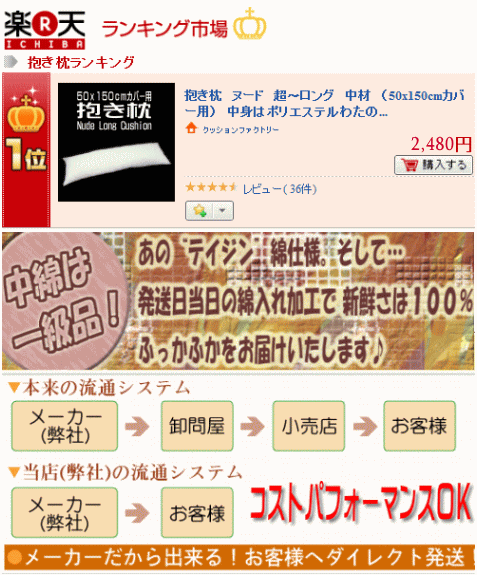 | ショップ | クッション工場/長座布団/抱き枕 |