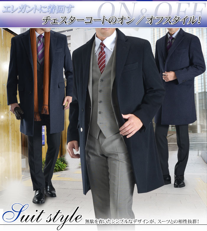 ウールにカシミヤを混紡した滑らかな素材感が魅力的!オン・オフで着回せ、大人の上品さ引き立つチェスターコートです。